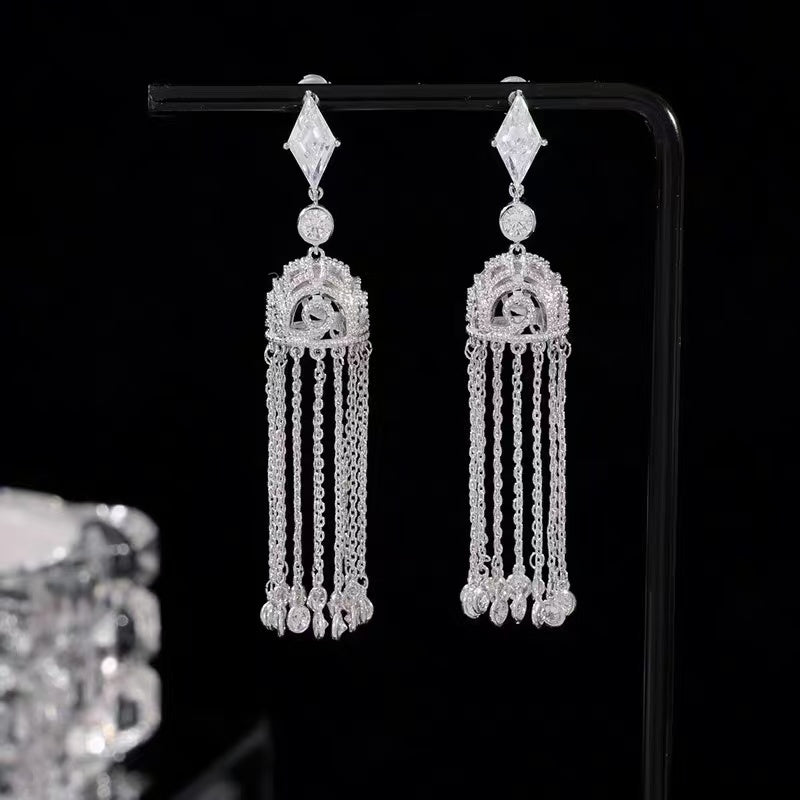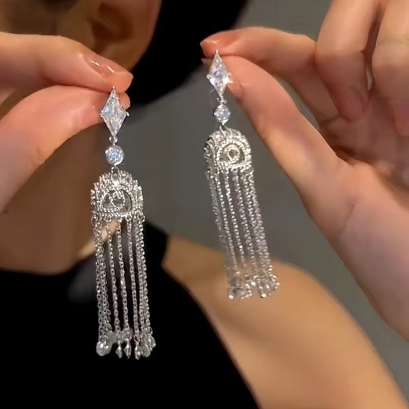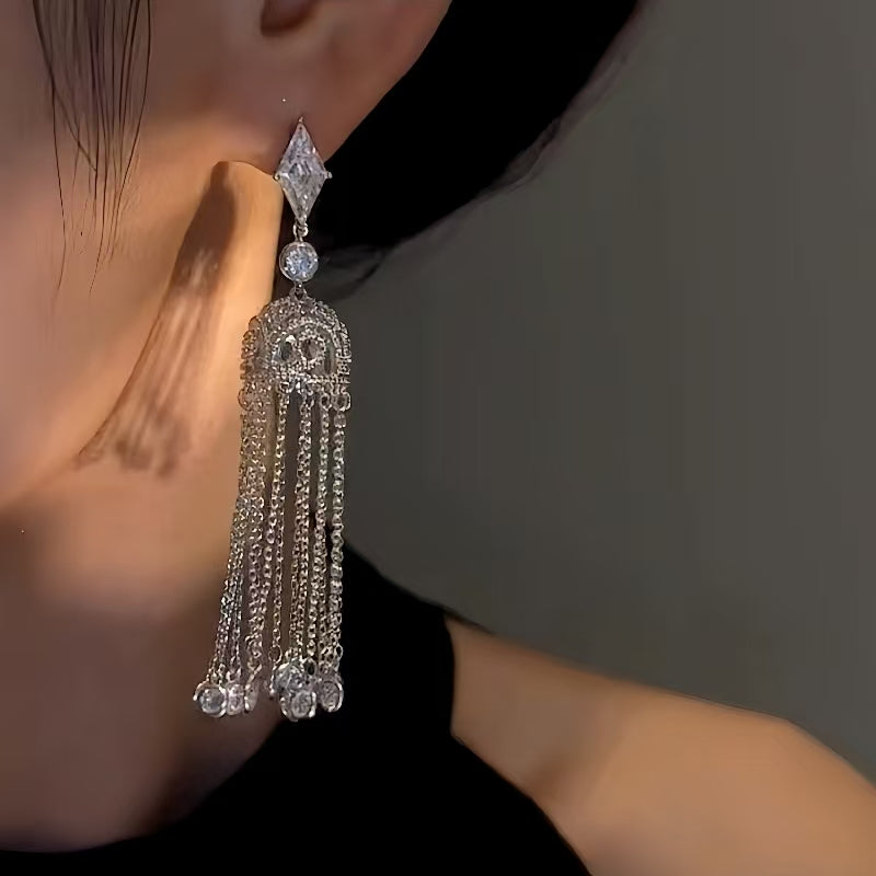 14K Gold-Plated Diamond Lantern Crystal Tassel Long Earrings