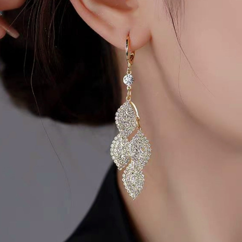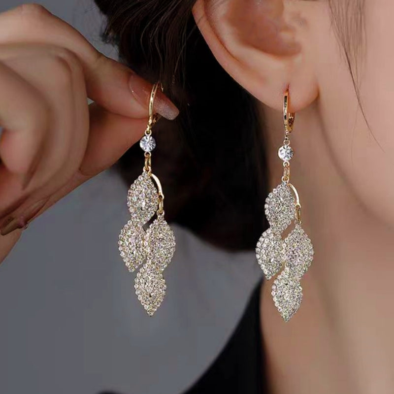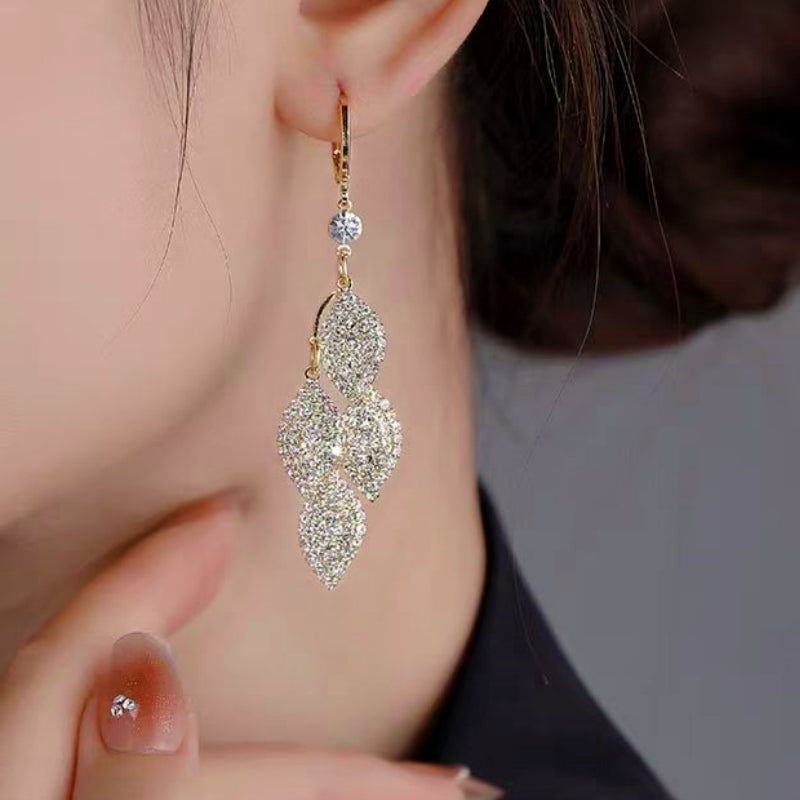 14K Gold-plated Diamond Leaf Earrings