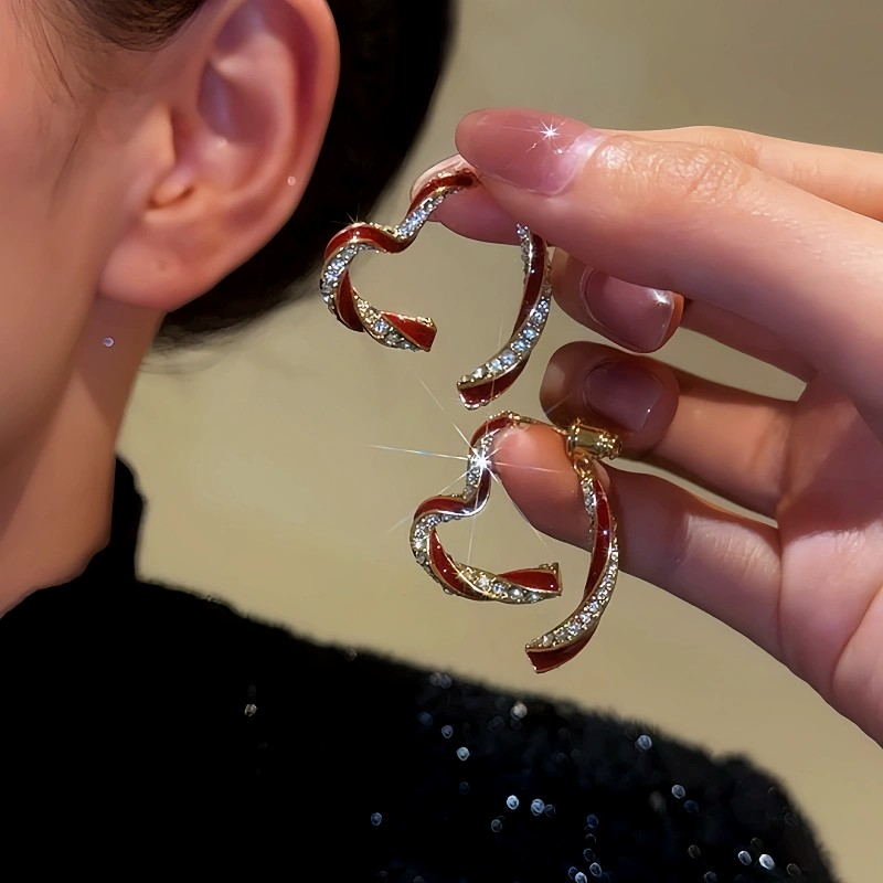 14K Gold-Plated Diamond Oil Drop Heart-Design Earrings