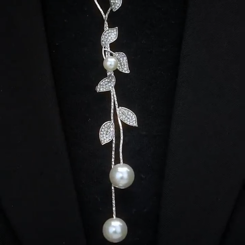 14K Gold-Plated Diamond Pearl Leaf Sweater Necklace