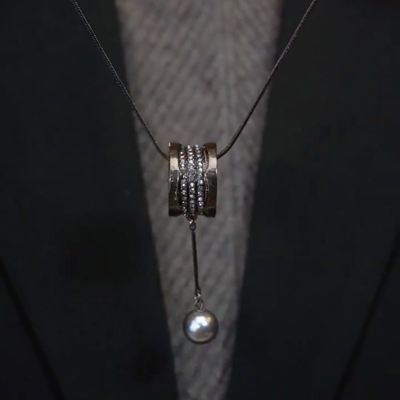 14K Gold-Plated Diamond Ring Pearl Long Necklace