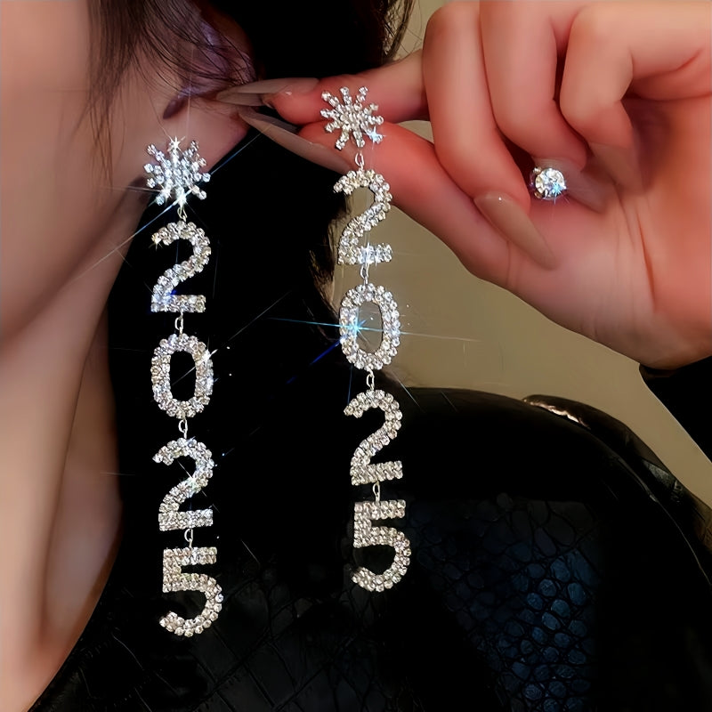 14K Gold-Plated Diamond Snowflake 2025 Digital Earrings