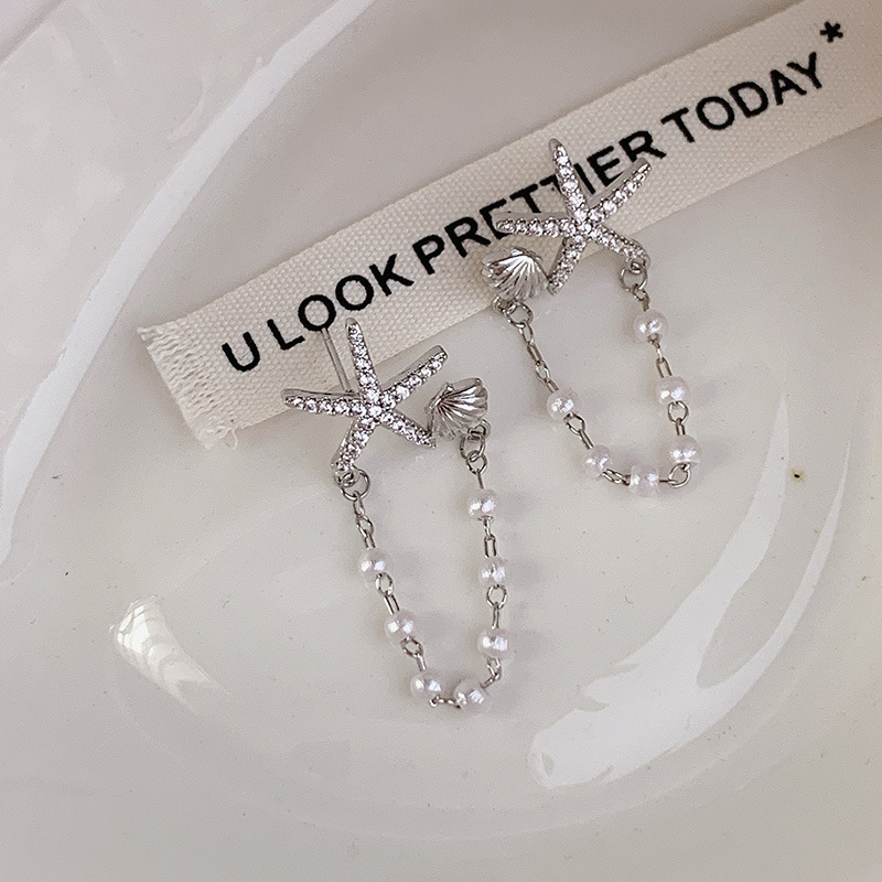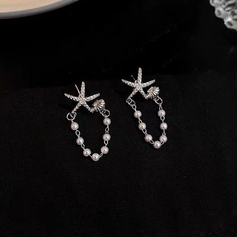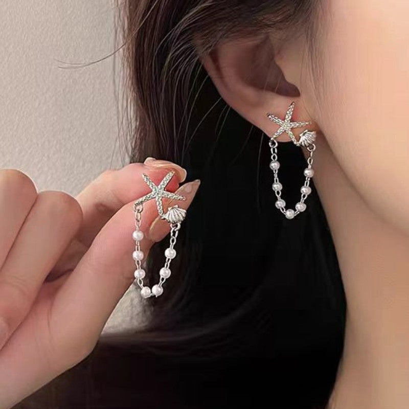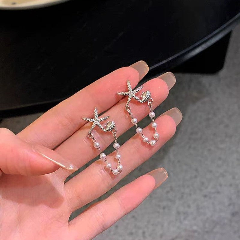 14K Gold-Plated Diamond Starfish Shell Pearl Earrings