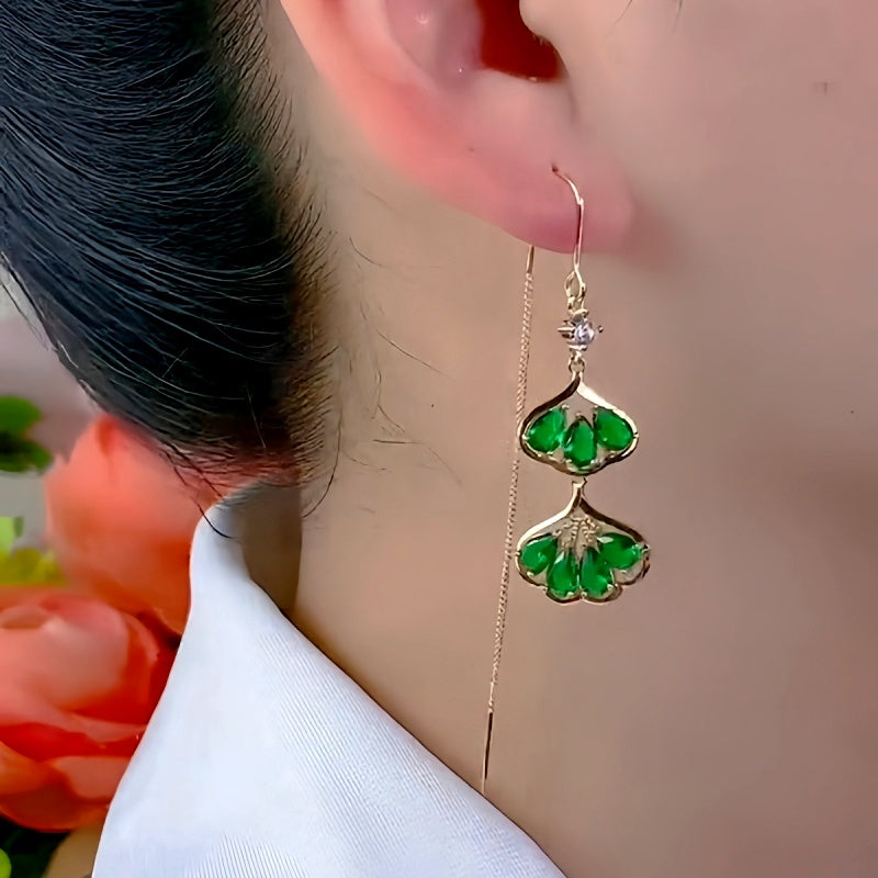 14K Gold-Plated Diamond-Studded Apricot Leaf Earrings