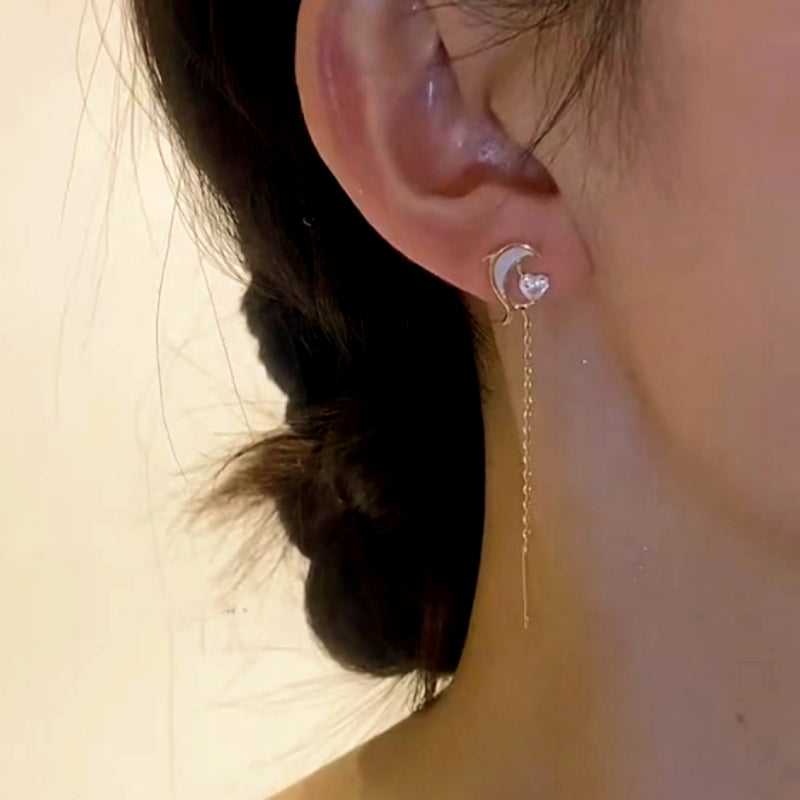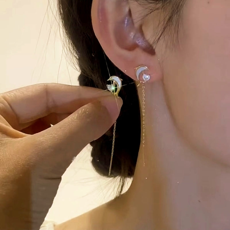 14K Gold-Plated Diamond-Studded Dolphin Threader Earrings