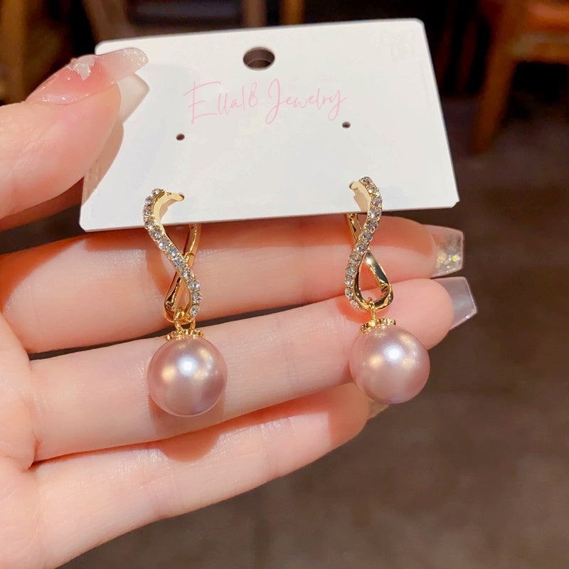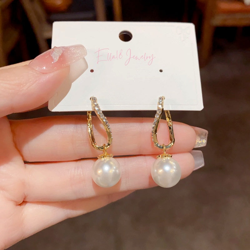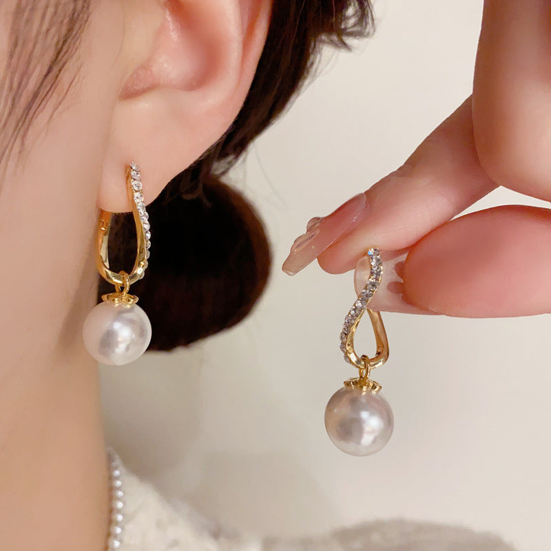 14k Gold-Plated Diamond-Studded Spiral Pearl Earrings
