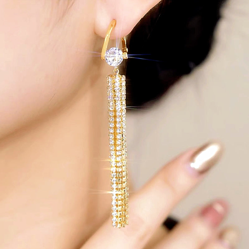 14K Gold-plated Diamond Tassel Earrings