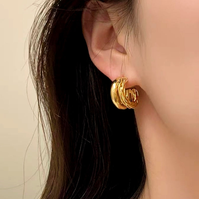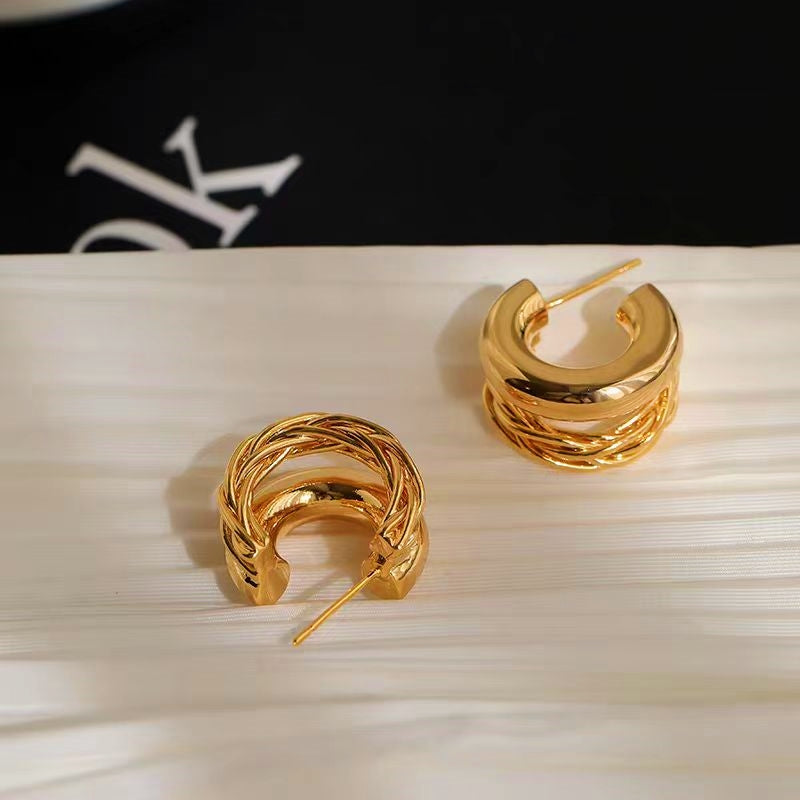 14K Gold-Plated Double-Layer C-Shaped Earrings