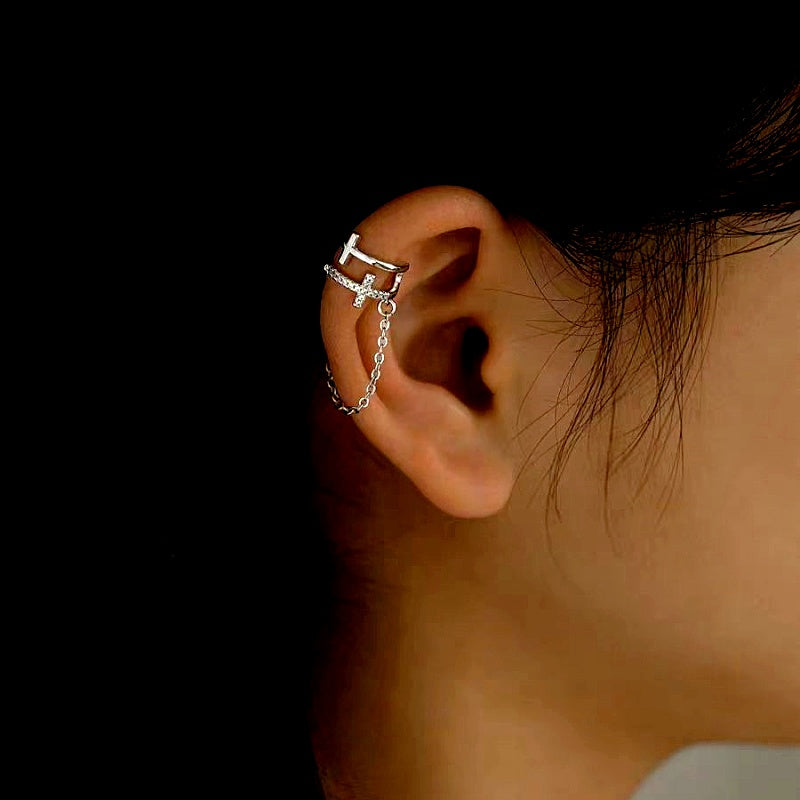14K Gold-plated double-Layer Hollow Cross-Shaped Star With Small Diamonds Ear Bone Clips