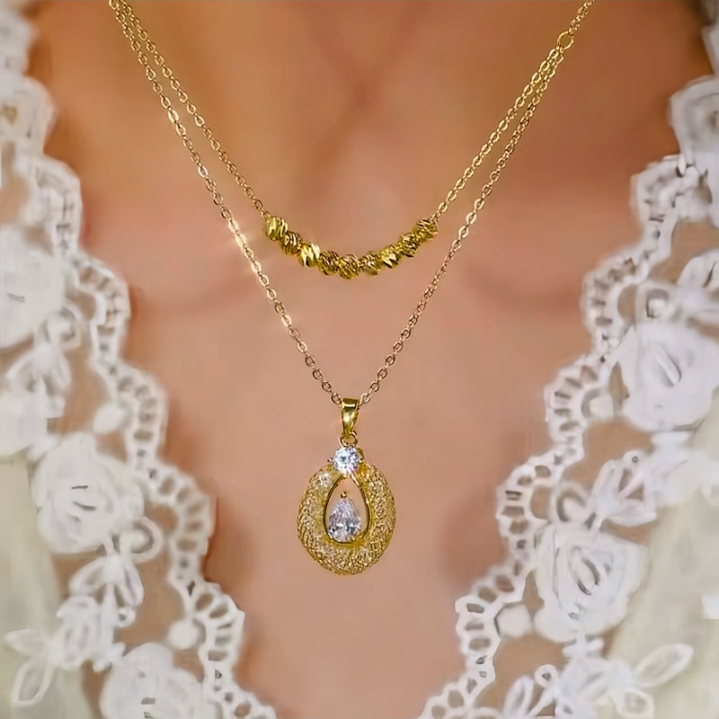 14K Gold-Plated Double-Layer Luck Beads Gold Wire Hollow Necklace