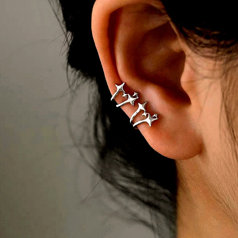 14K Gold-plated Double Layer Star Ear Clips ( 1 Pair )
