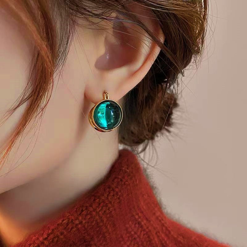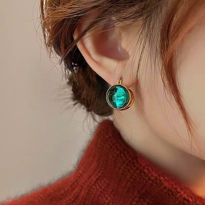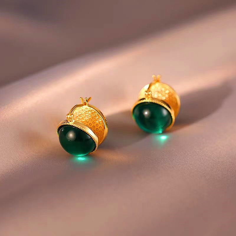14K Gold-plated Double-Sided Green Pearl Earrings