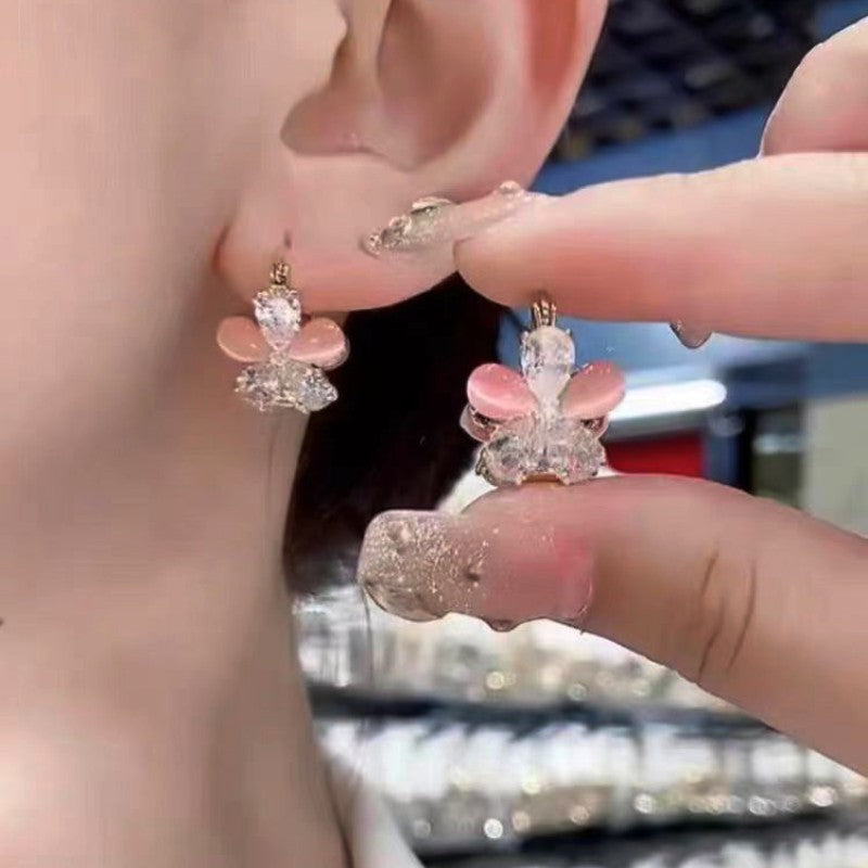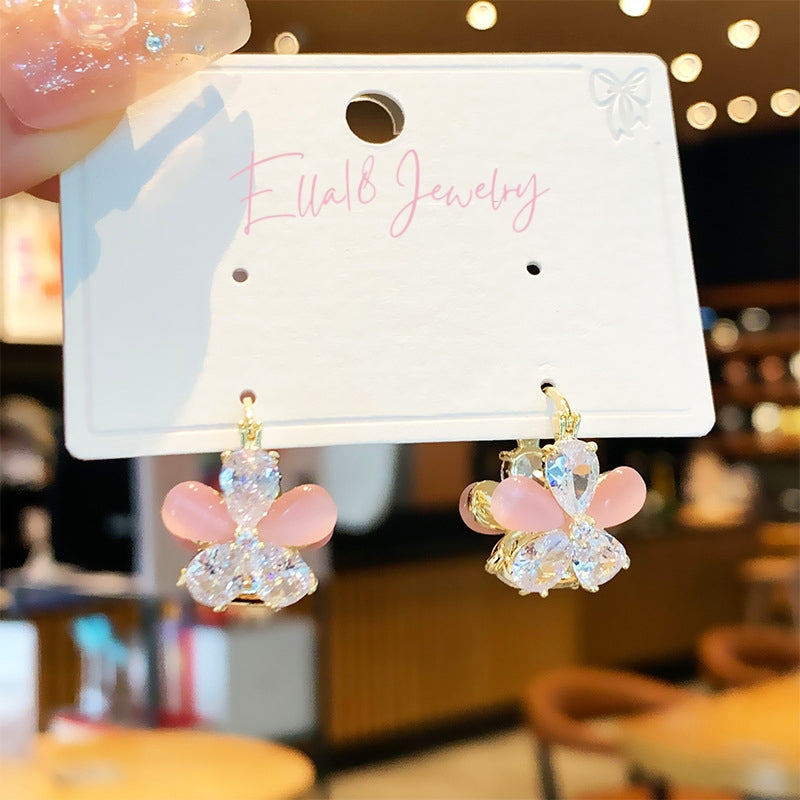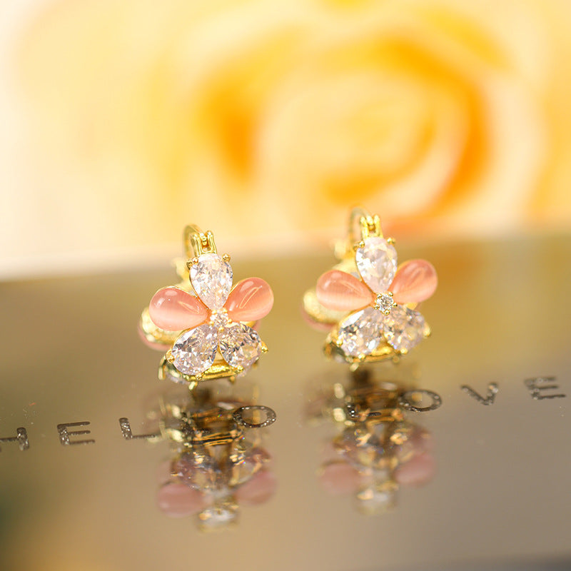 14K Gold-plated Double-Sided Micropaved Opal Flower Earrings
