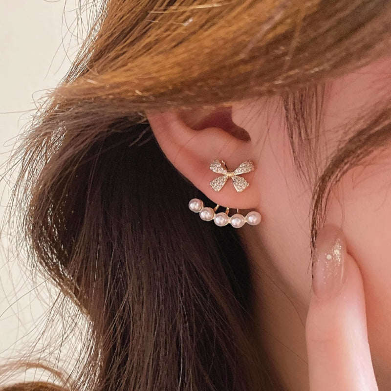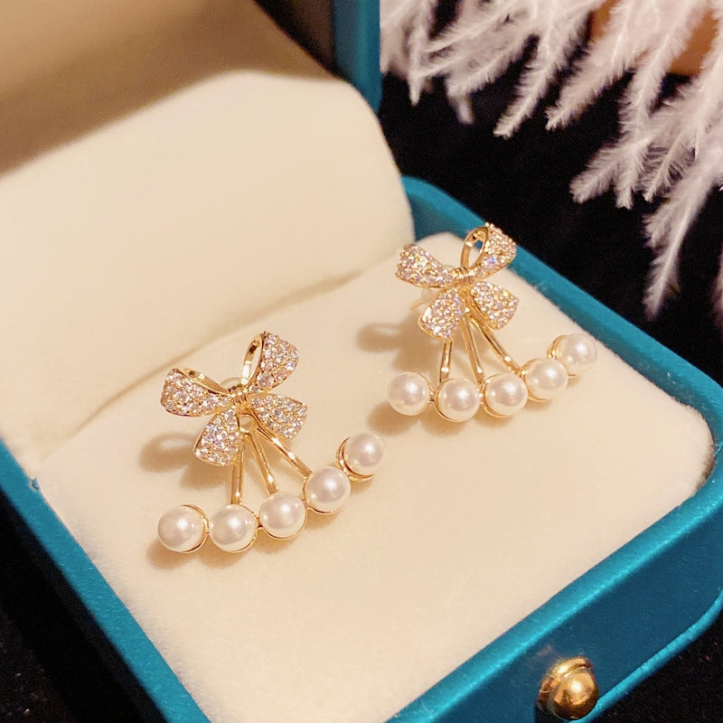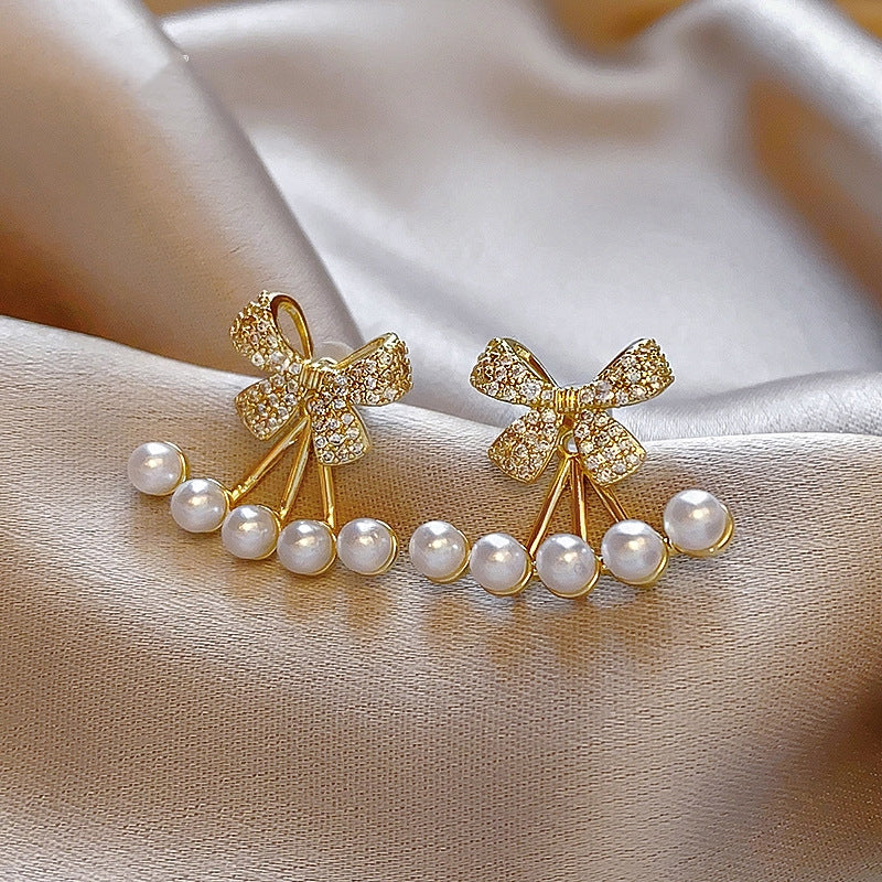 14K Gold-Plated Elegant Bow And Pearl Earrings
