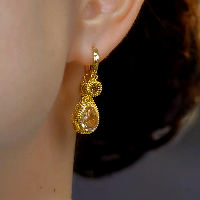 14K Gold-plated Elegant Brown Zircon Durian Earrings