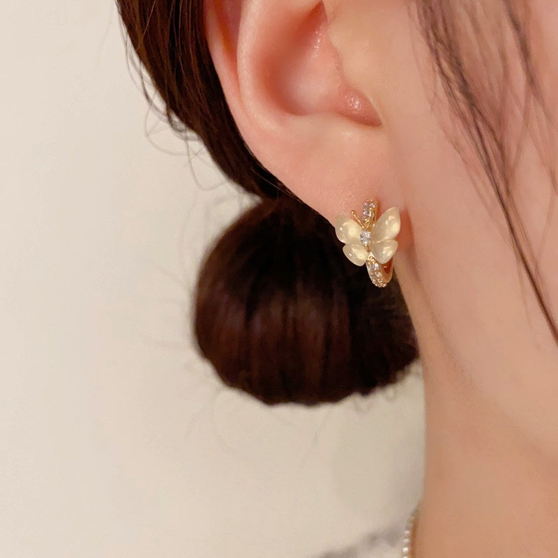 14K Gold-Plated Elegant Butterfly Hoop Earrings