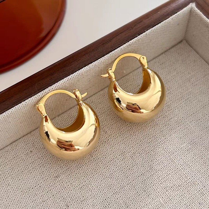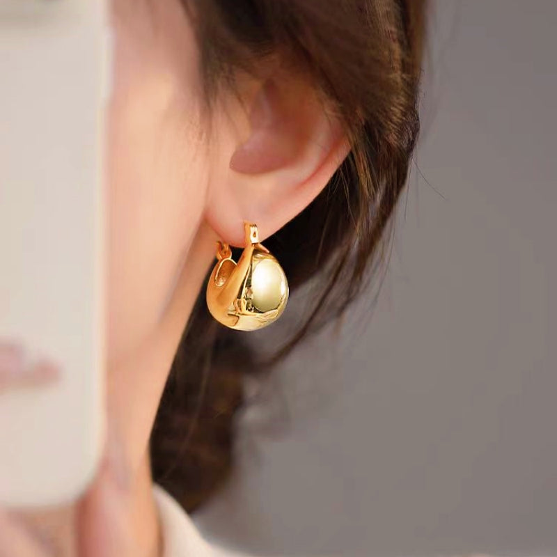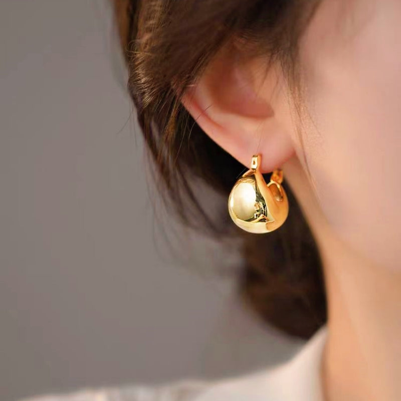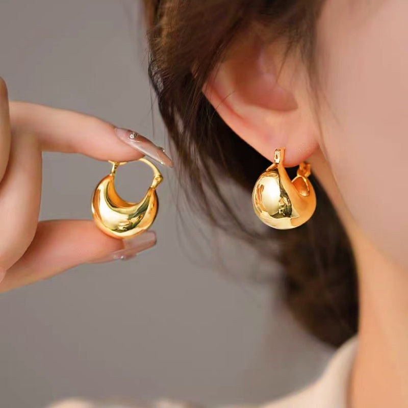 14K Gold-Plated Elegant C-Shaped Hollow Ball Earrings