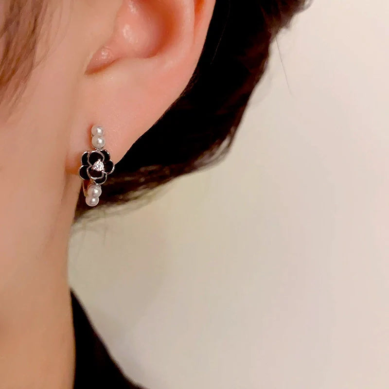 14K Gold-Plated Elegant Camellia Pearl Hoop Earrings