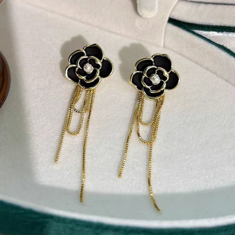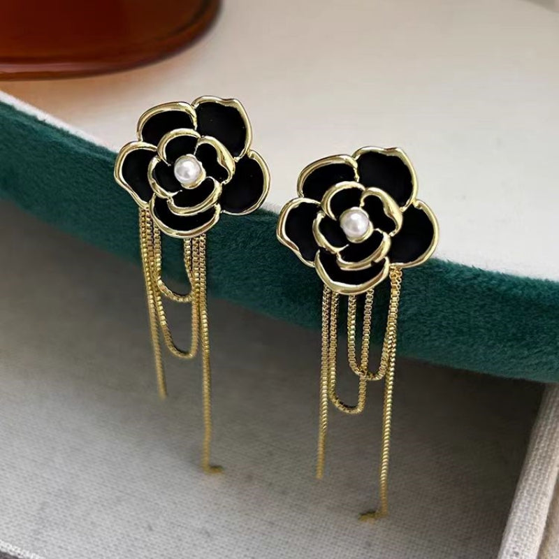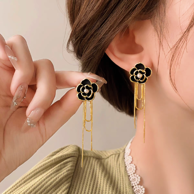 14K Gold-Plated Elegant Camellia Pearl Tassel Earrings