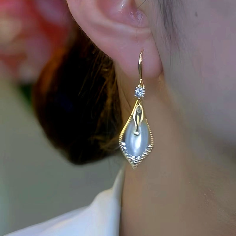 14K Gold-Plated Elegant Cat's Eye Stone Leaf Earrings