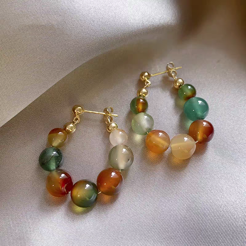 14K Gold-Plated Elegant Clorful Beaded Earrings