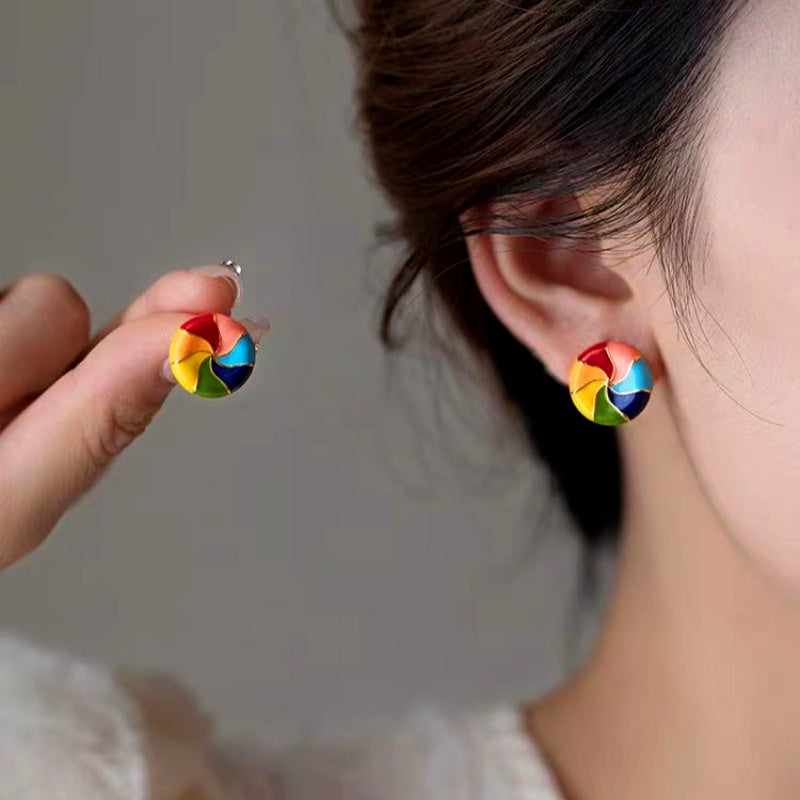 14K Gold-Plated Elegant Colorful Enamel Rainbow Studs