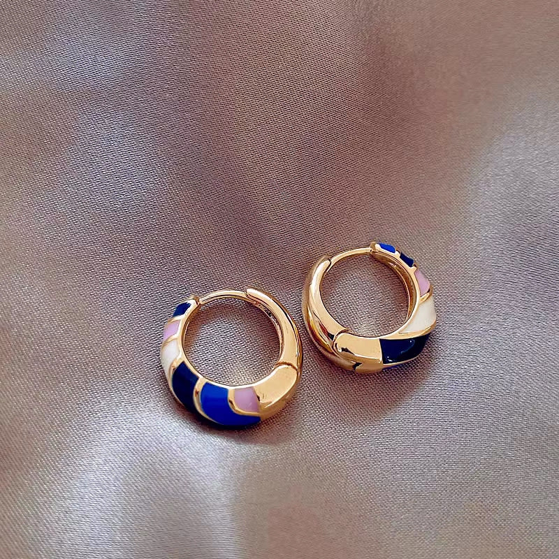 14K Gold-Plated Elegant Colorful Small Hoop Earrings