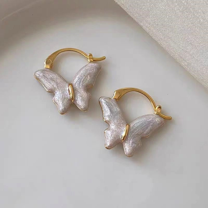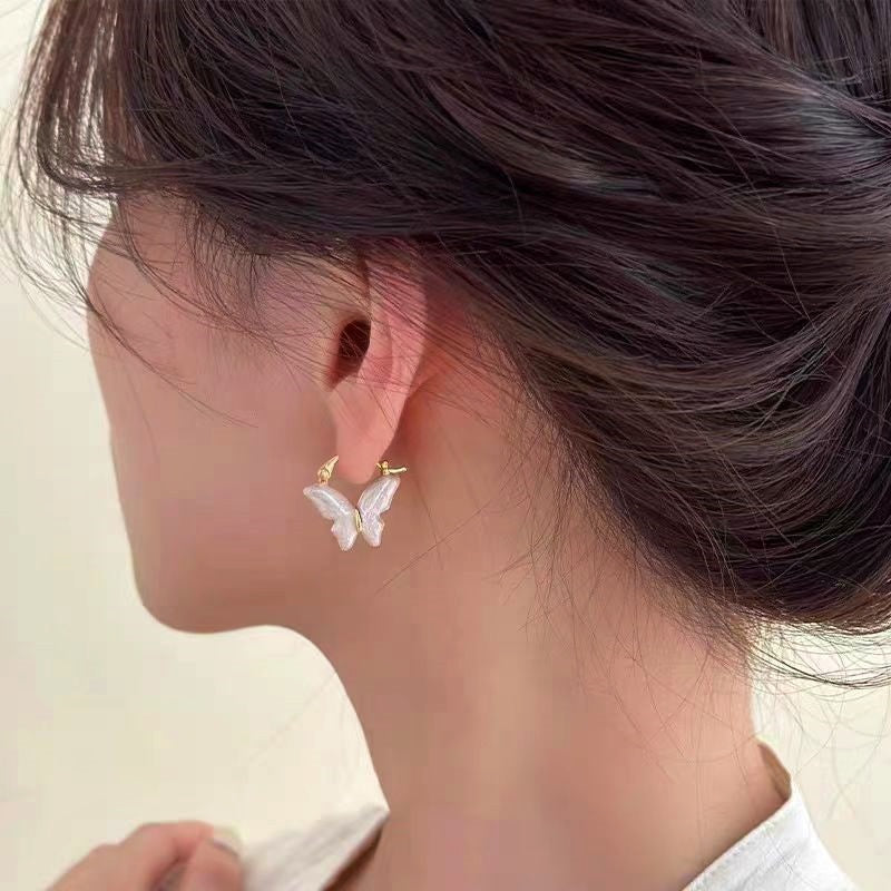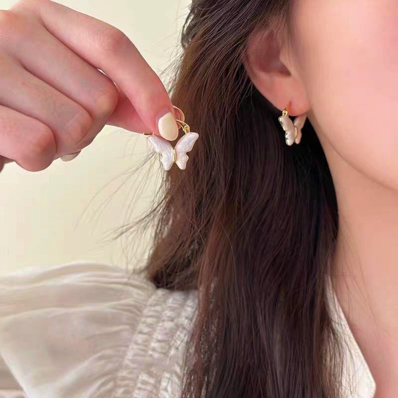 14K Gold-Plated Elegant Cream Butterfly Earrings