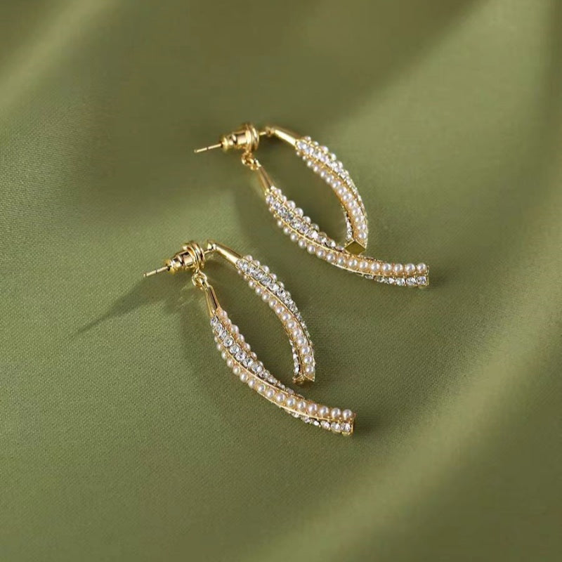 14K Gold-Plated Elegant Cross Pearl Earrings