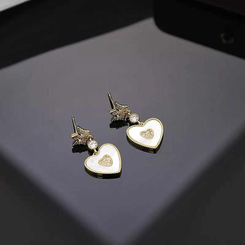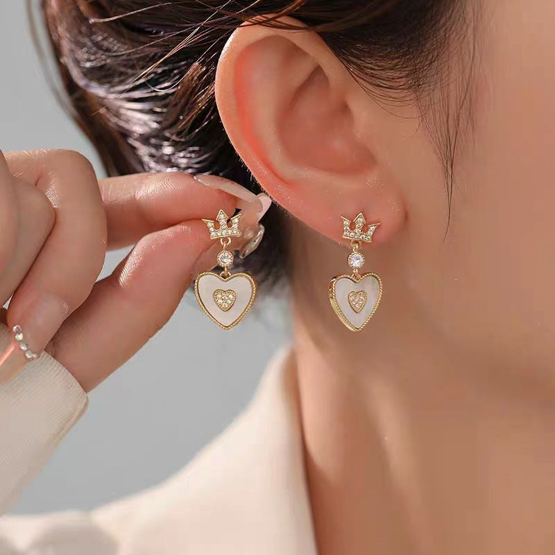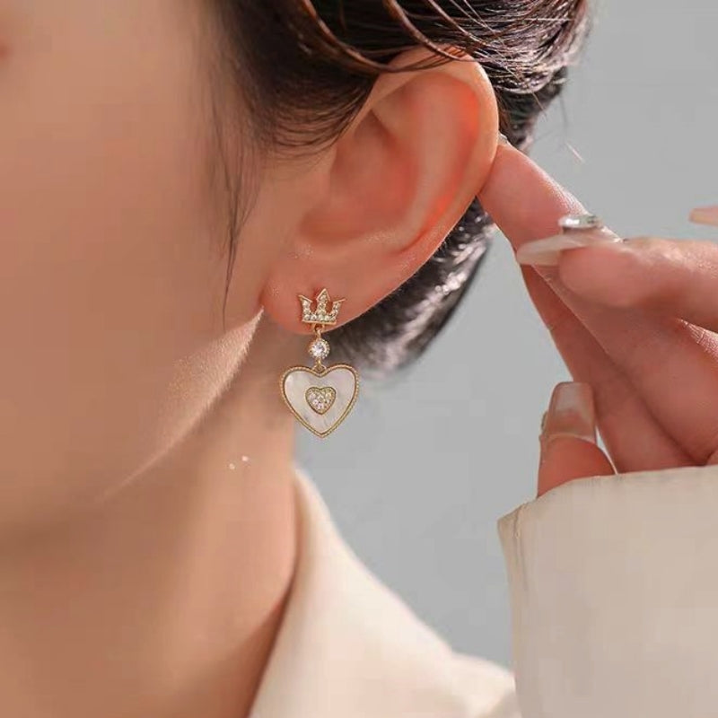 14K Gold-Plated Elegant Crown Heart Earrings