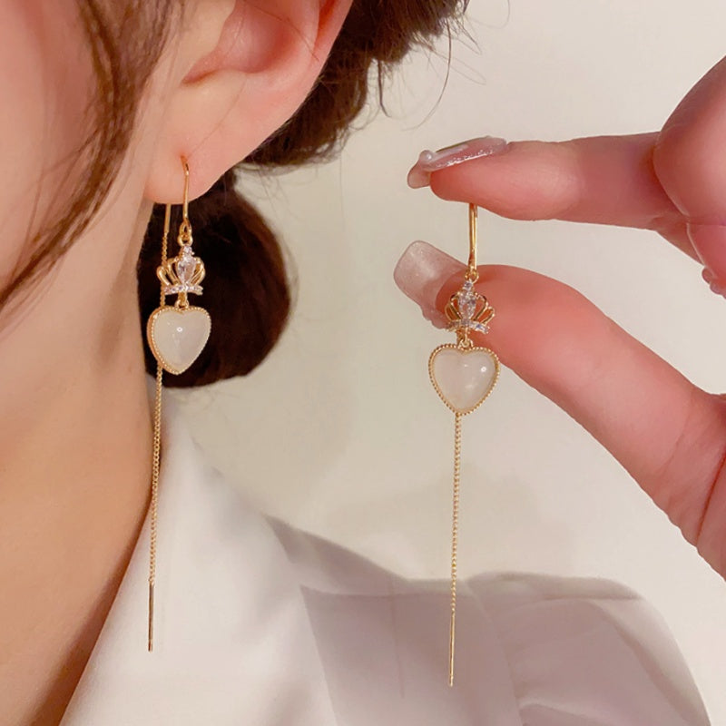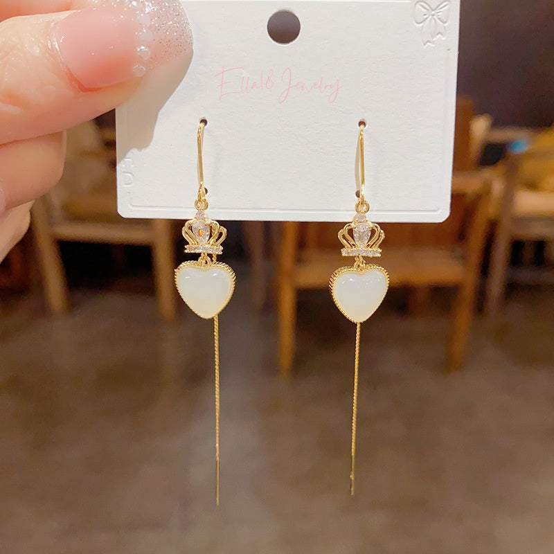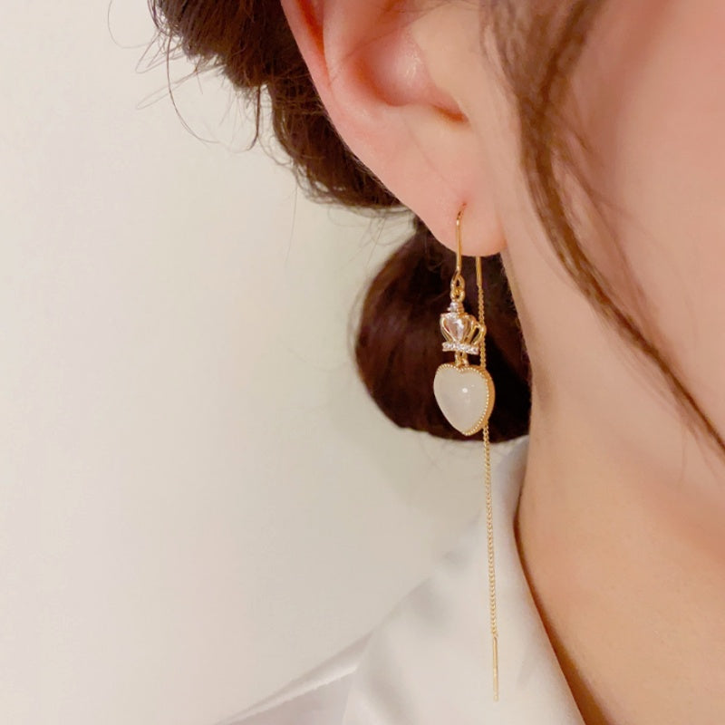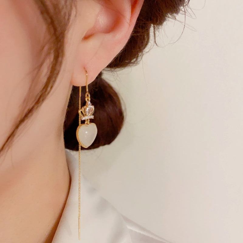 14K Gold-Plated Elegant Crown Heart Threader Earrings