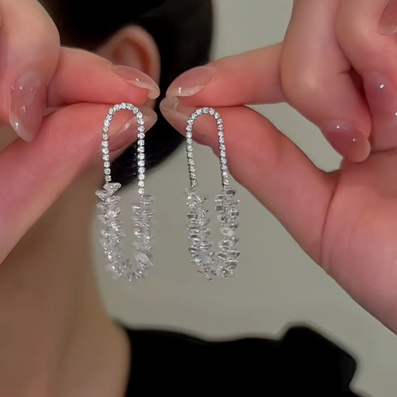 14K Gold-plated Elegant Crystal Chain Tassel Earrings