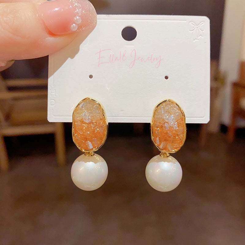 14K Gold-Plated Elegant Crystal Pearl Drop Earrings