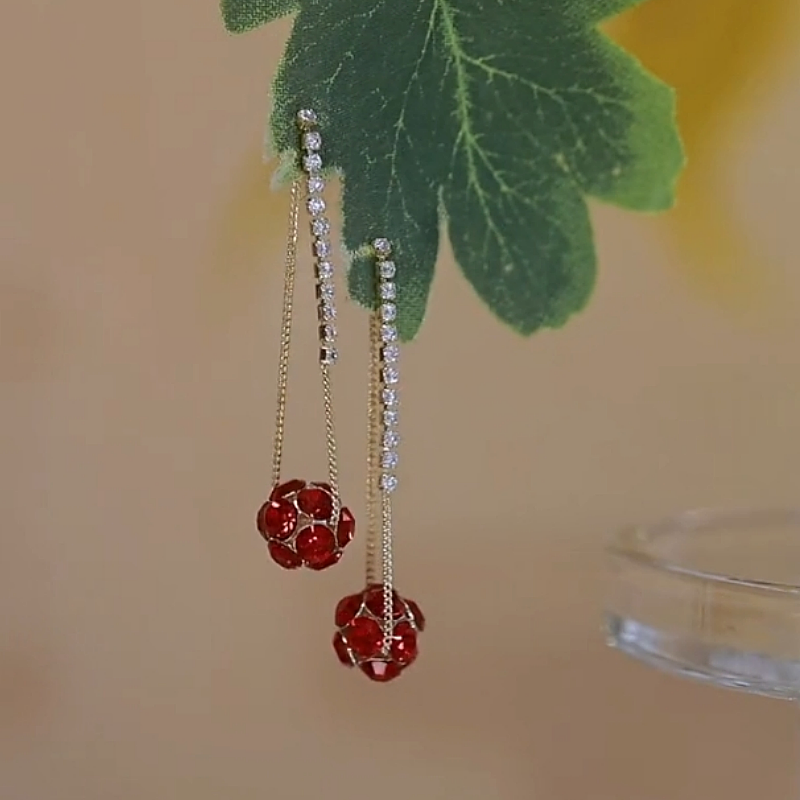 14K Gold-Plated Elegant Diamond Ball Tassel Earrings