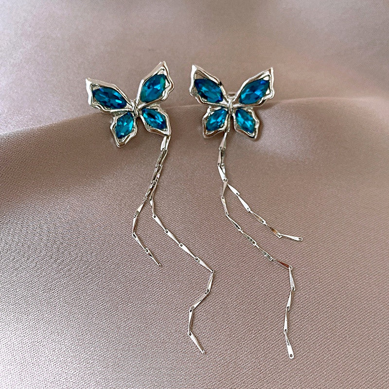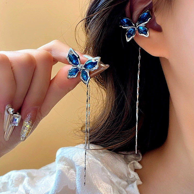 14K Gold-plated Elegant Diamond Butterfly Tassel Ear Bone Clip