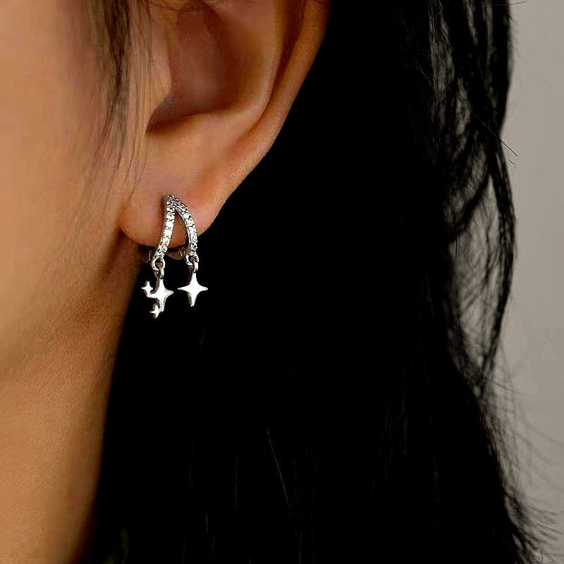 14K Gold-Plated Elegant Diamond Double-Layer Star Earrings