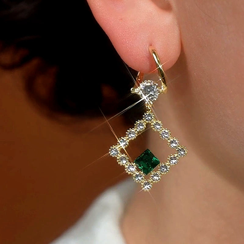 14K Gold-Plated Elegant Diamond Green Crystal Earrings