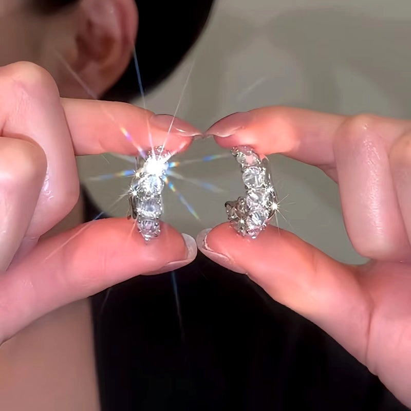 14K Gold-Plated Elegant Diamond Hoop Earrings