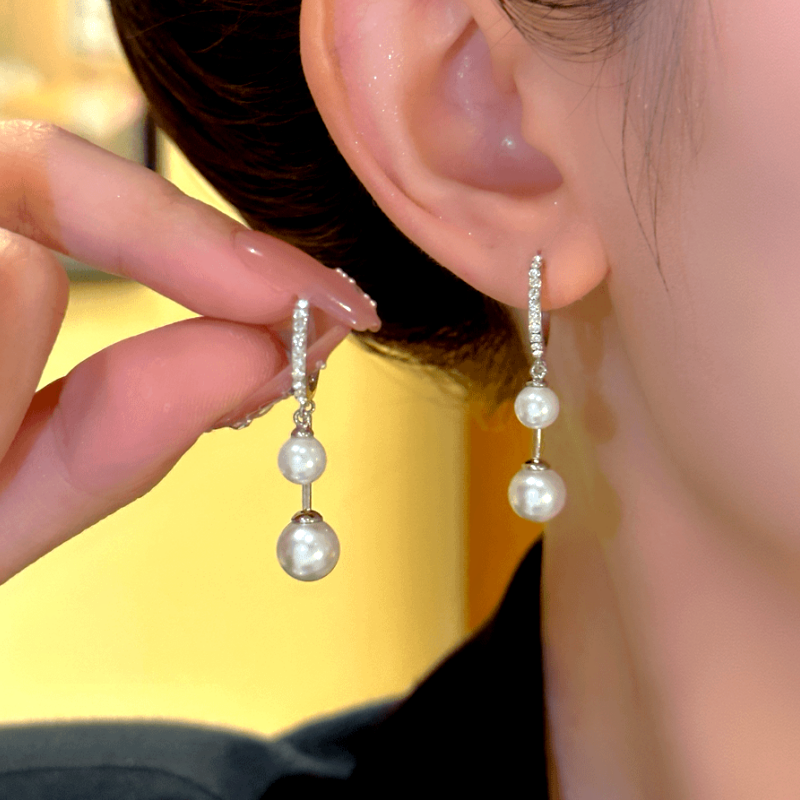 14K Gold-Plated Elegant Diamond Pearl Tassel Earrings
