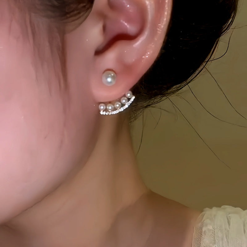 14K Gold-plated Elegant Diamond-Studded Pearl Earrings