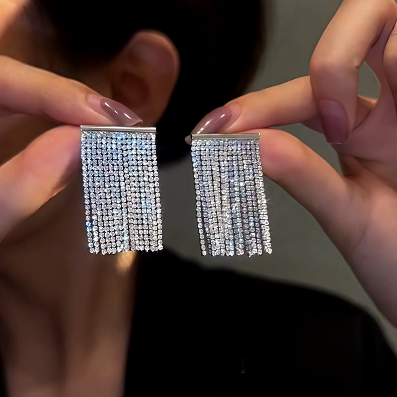 14K Gold-Plated Elegant Diamond Tassel Earrings