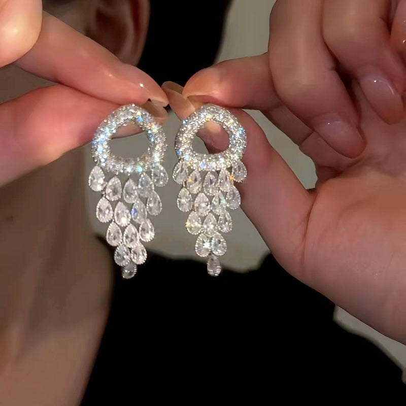 14K Gold-Plated Elegant Diamond Zircon Tassel Drop Earrings