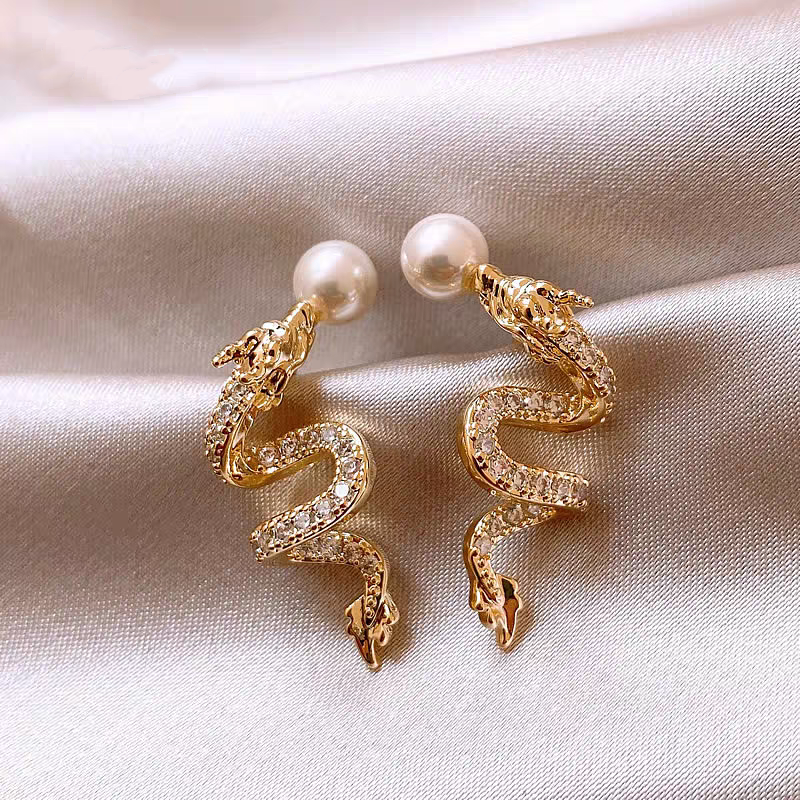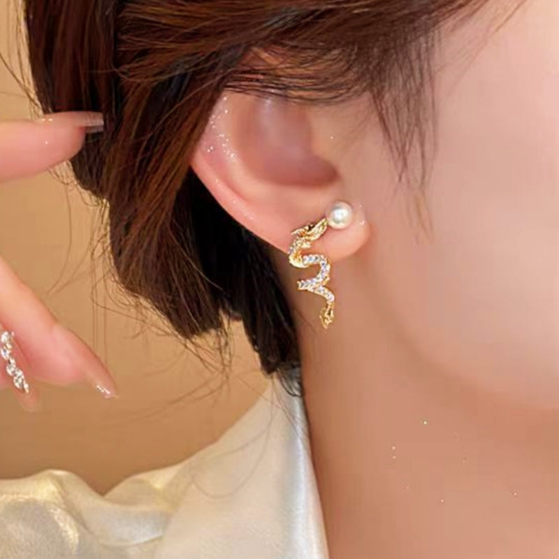 14k Gold-Plated Elegant Dragon Soaring Pearl Earrings