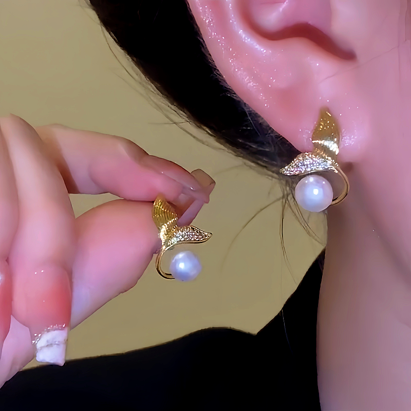 14K Gold-plated Elegant Fishtail Bead Earrings