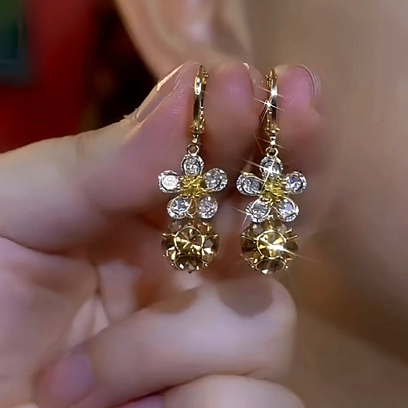14K Gold-Plated Elegant Flower Diamond Ball Earrings