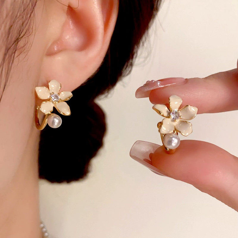 14K Gold-Plated Elegant Flower Pearl Earrings
