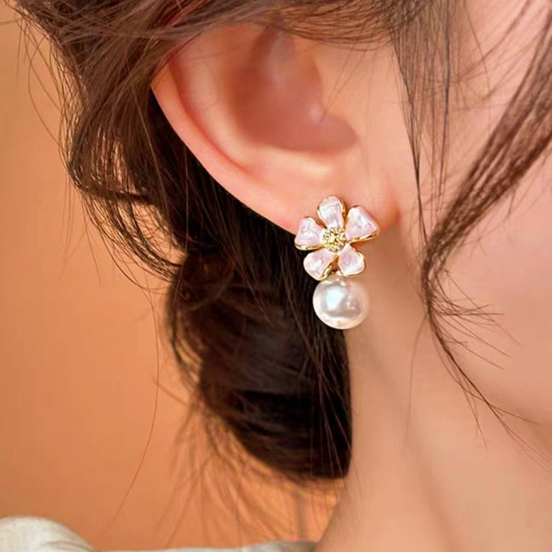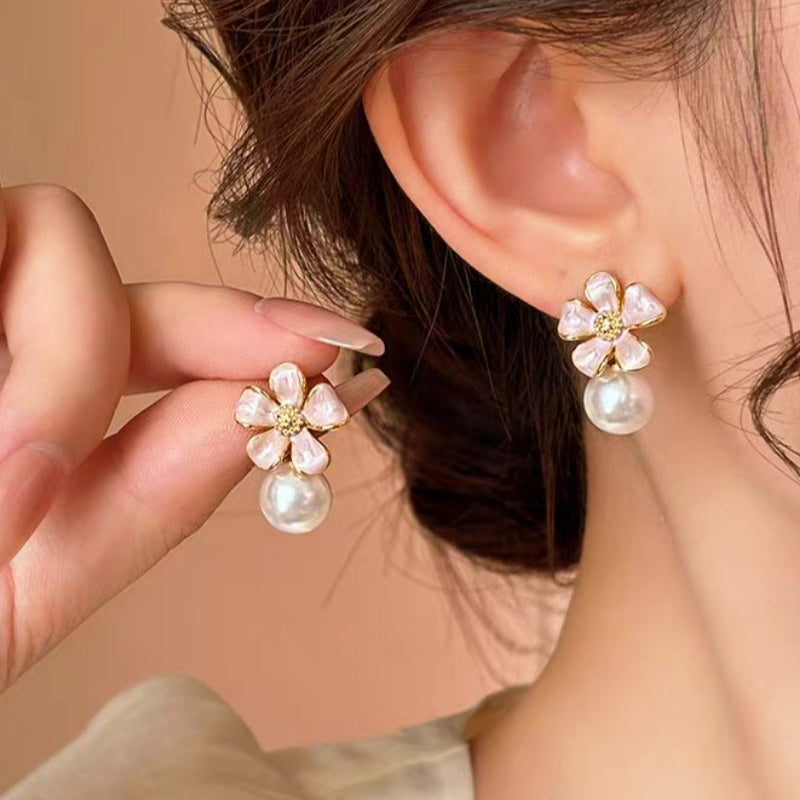 14k Gold-Plated Elegant Flower Pearl Earrings