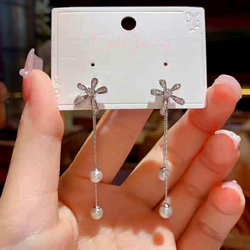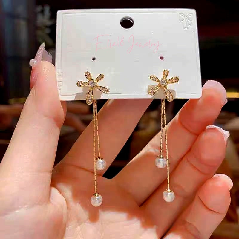 14K Gold-Plated Elegant Flower Pearl Tassel Earrings
