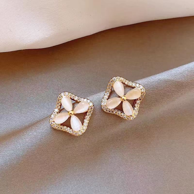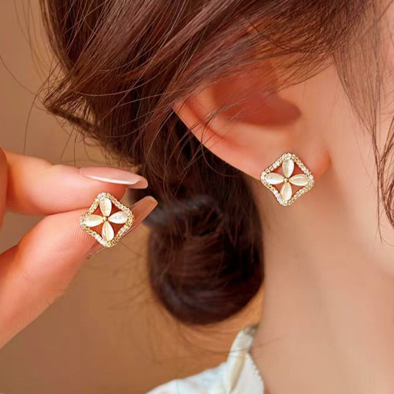 14k Gold-Plated Elegant Four-Leaf Clover Stud Earrings