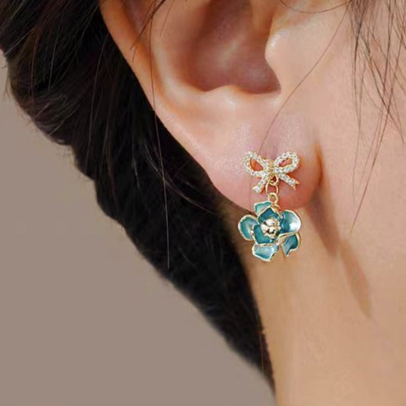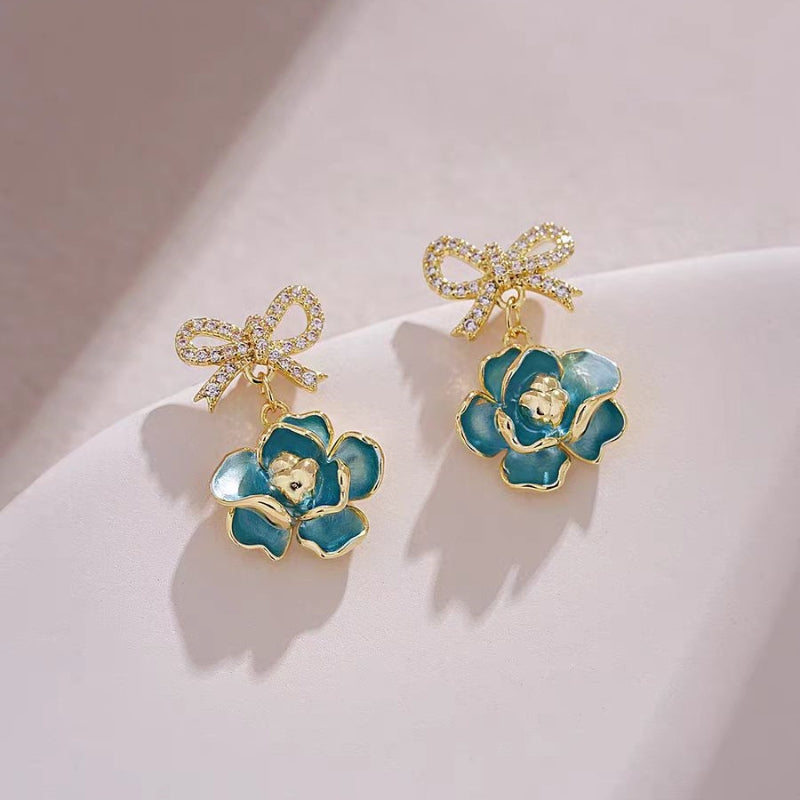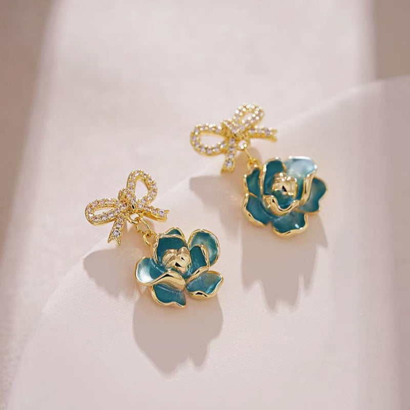 14K Gold-Plated Elegant Gardenia Flower Bow Earrings